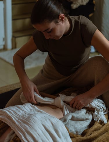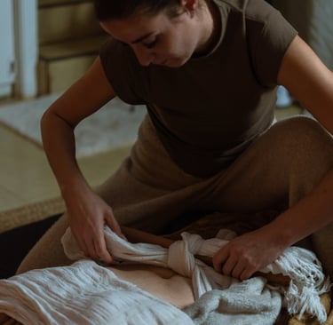 • Massage Postnatal + Rebozo : Spécialement conçu pour les jeunes mamans, ce massage de détente est accompagné d’un resserrage du bassin à l’aide du Rebozo. Disponible dès la première semaine après un accouchement par voie basse (ou dès cicatrisation en cas de césarienne), il offre une relaxation profonde du corps et de l’esprit, avec une méditation guidée pour celles qui le souhaitent.